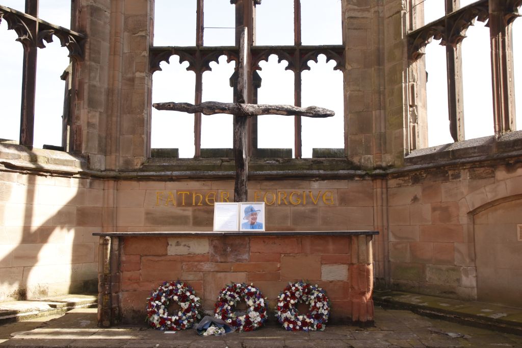 Within the contemporary cross is a cross made from nails from the medieval cathedral of St.Marys des...