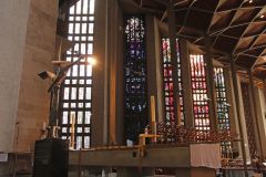 The stained glass windows in the Nave, by Lawrence Lee, Keith New and Geoffrey Clarke, face away fro...