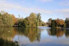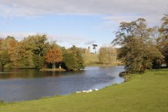 Octagonal Lake with the Palladian Bridge and Gothic Temple in the distance.
