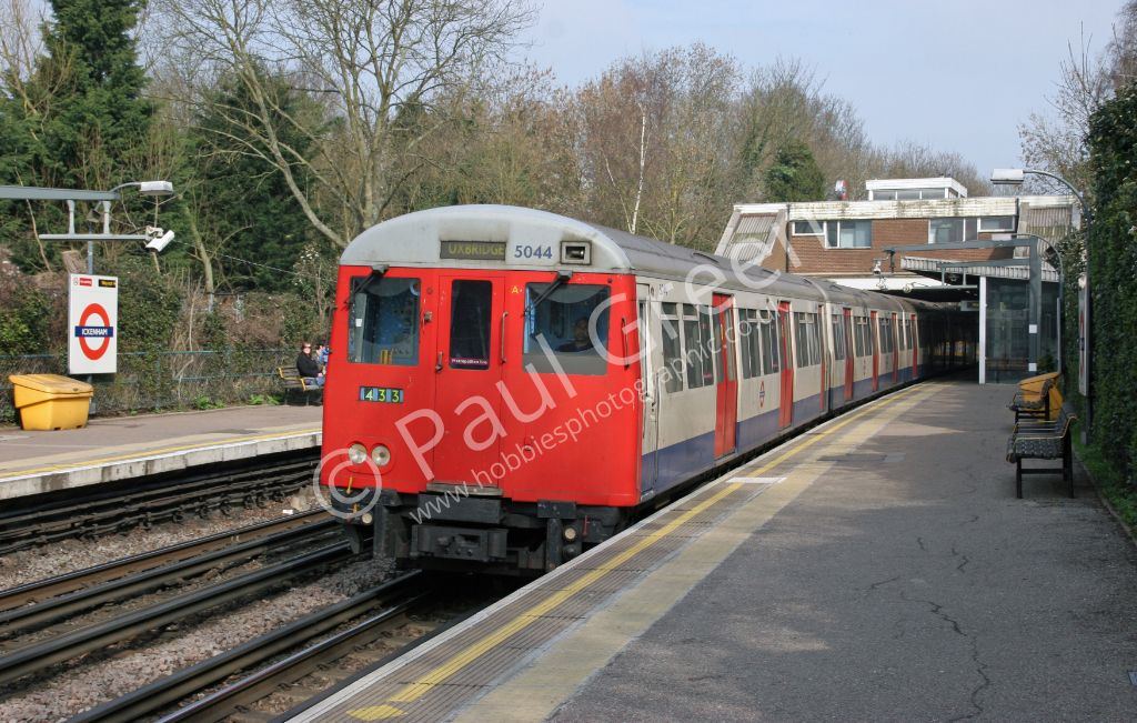 Piccadilly Line train leaving Ickenham for the long journey to Cockfosters with Driving Motor No.216...