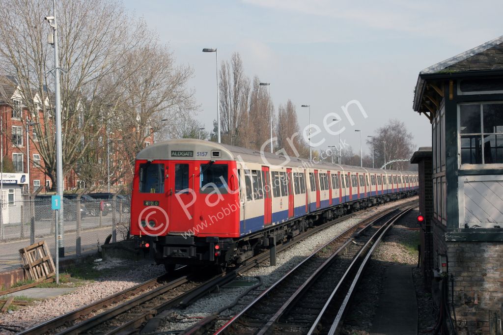 Metropolitan Line A62 Driving Motor No.5157 at the rear of an Uxbridge to Aldgate service leaving Ru...