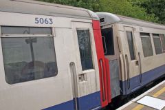 Metropolitan Line A60 Driving Motor No.5024 at the rear of an Uxbridge-Aldgate train at Harrow-on-th...