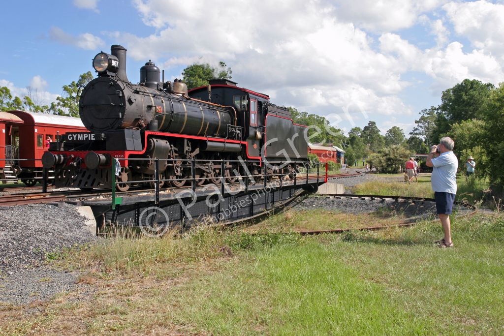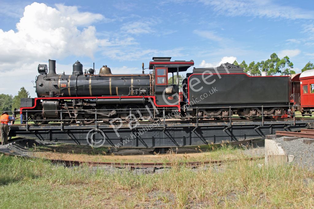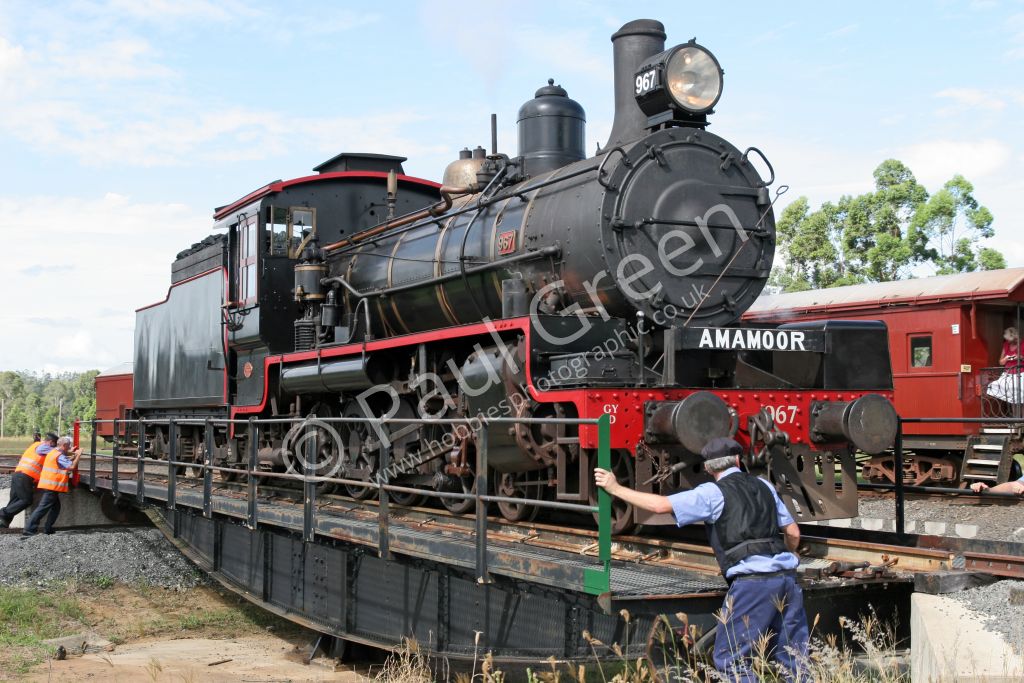 C 17 No.967 on the turntable at Amamoor.The engine entered service in August 1950 and worked in the ...
