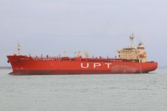 Inland motor tanker Hertogin seen in Rotterdam on This vessel is a motor tanker, was built in Romania in 2005, and has a tonnage of 3999 grt. (Photo courtesy ok Karen Donkin)