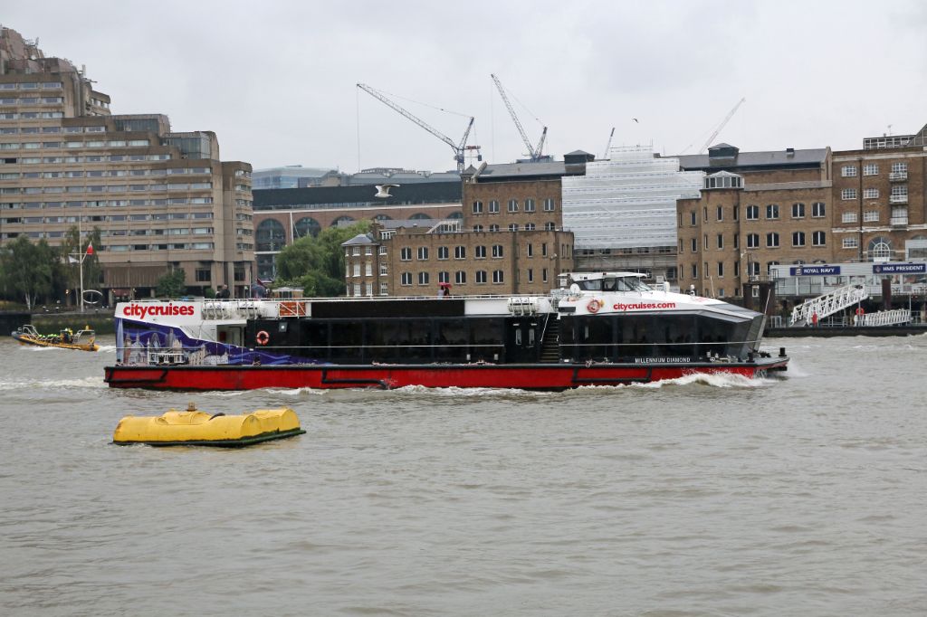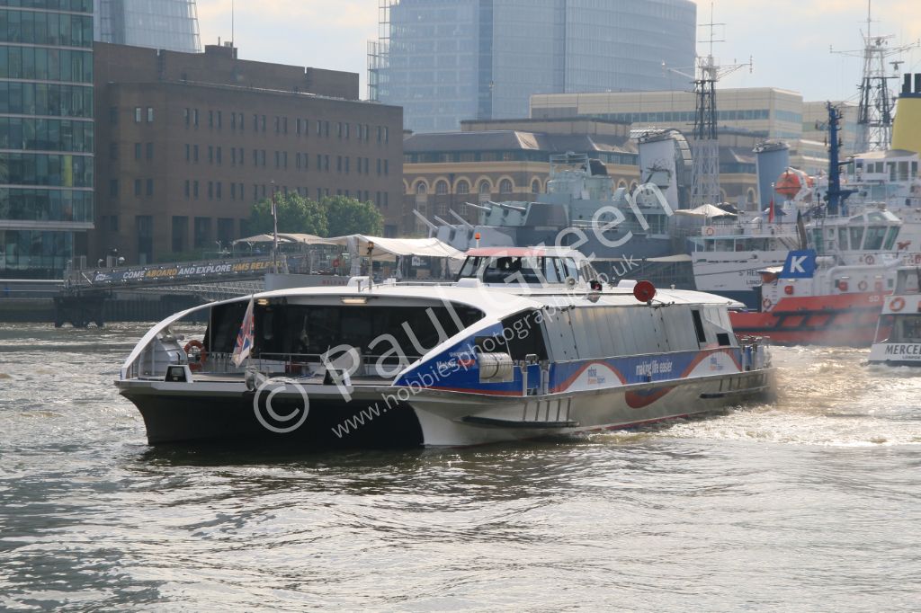 A busy scene on the Thames.Thames Clipper Meteor Clipper built by Brisbane Ship Construction, Austra...