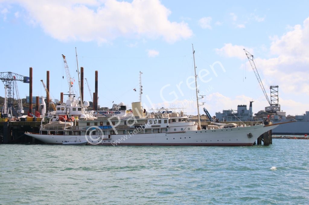 Dona Amelia in Falmouth Harbour on 31st March 2016.Formerly known as Rosenkavalier as well as Haida ...