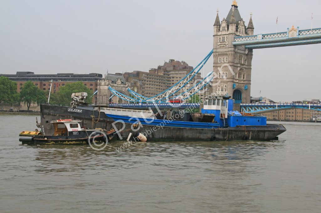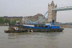 Former Dutch barge built in 1930 operating as a waste removal vessel on the Thames in Central London...