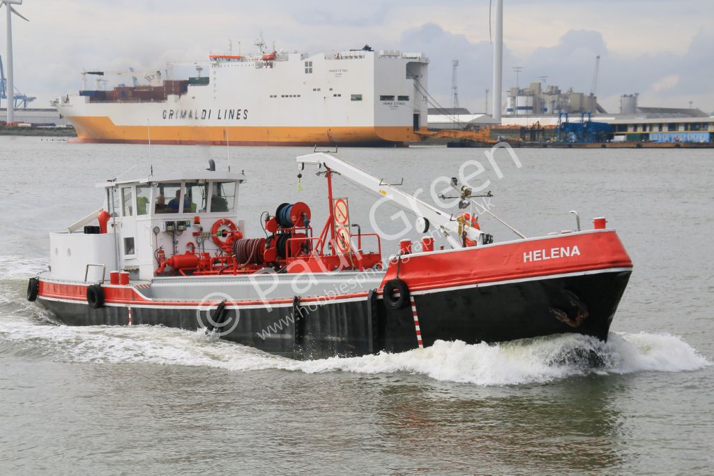 The small bunkering barge Helena seen off Gravesend on 14th June 2016.Grimaldi Lines Grande Cotonou ...