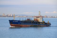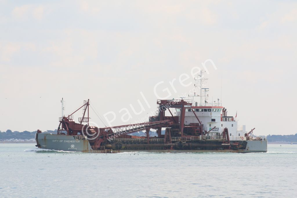 The dredger City of Chichester seen off Calshot Spit inbound for Southampton on 17th August 2015.