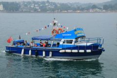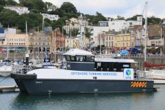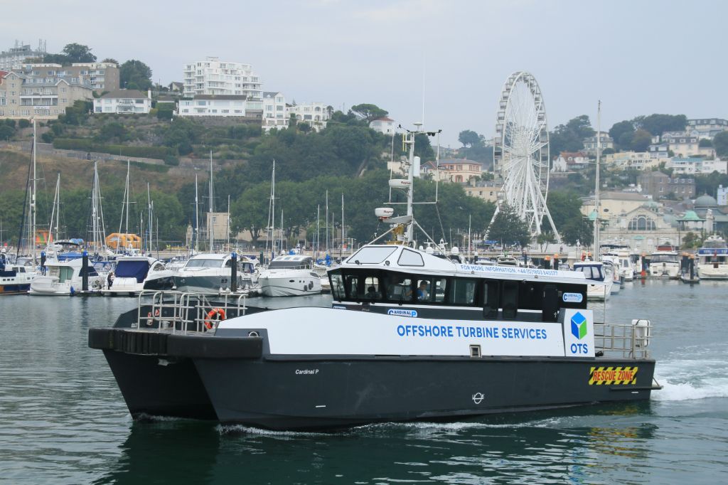 The 2012 Ctruk built MPC 19 Offshore Turbine Services vessel Cardinal P leaving Torquay harbour on 2...