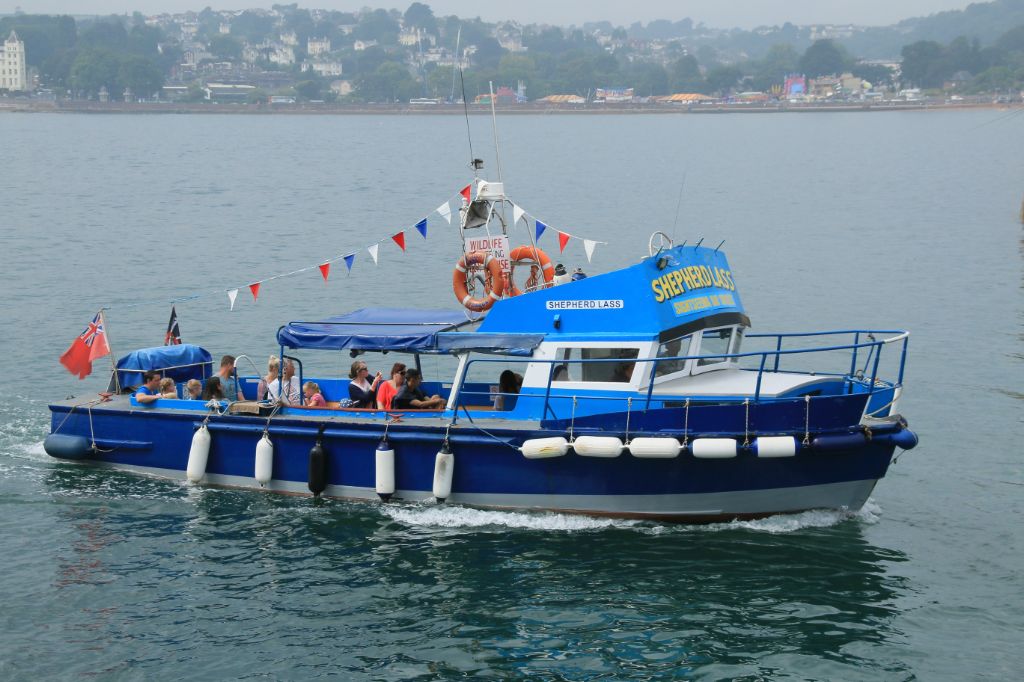 The pleasure craft Shepherd Lass arriving at Torquay Harbour on 25th August 2016 after a pleasure tr...