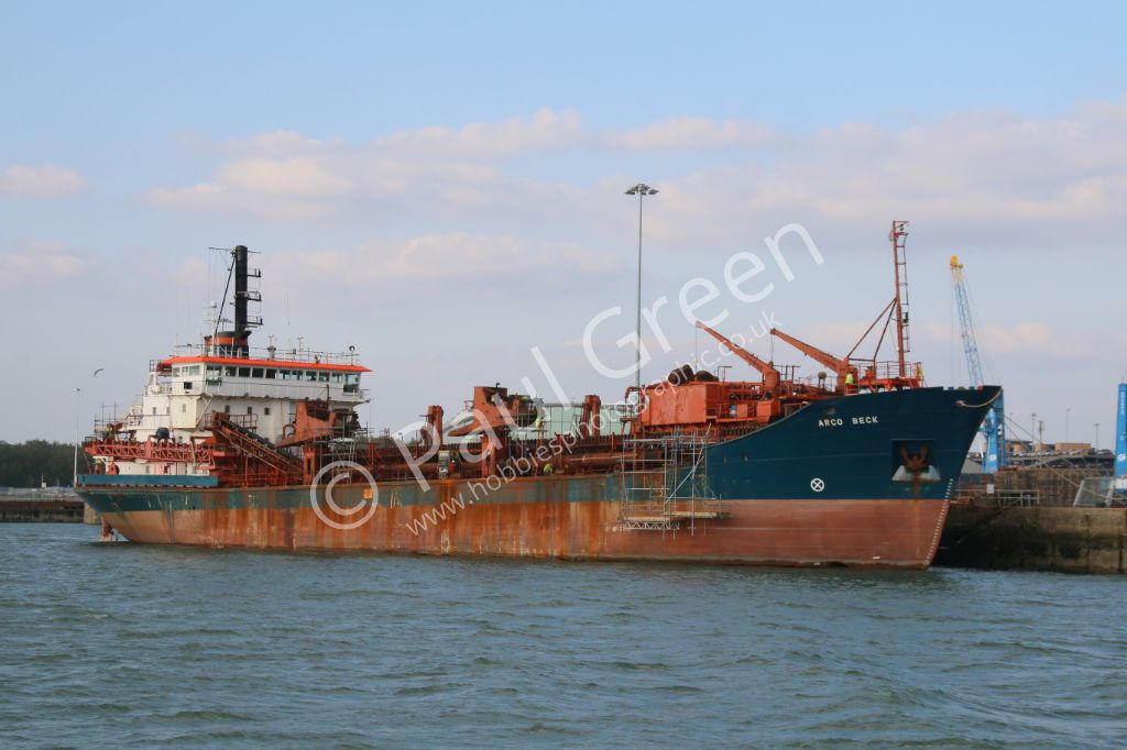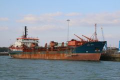 The 1989 Dutch built suction dredger Arco Beck seen at berth 48 in Southampton on 9th September 2015.