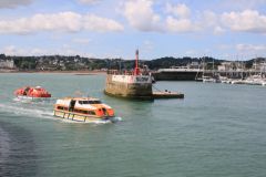 The inbound Number 1 tender for Seabourn Quest at the entrance to Torquay Harbour on 5th August 2016.