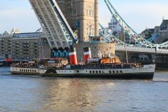 Preserved pleasure vessel Balmoral cdeparting Clenedon Pier on 28th July2016 after a days excursion ...