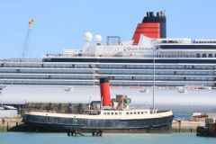 The preserved Red Funnel Tug/Tender Calshot seen at her moorings in Southampton Docks on 30th August...
