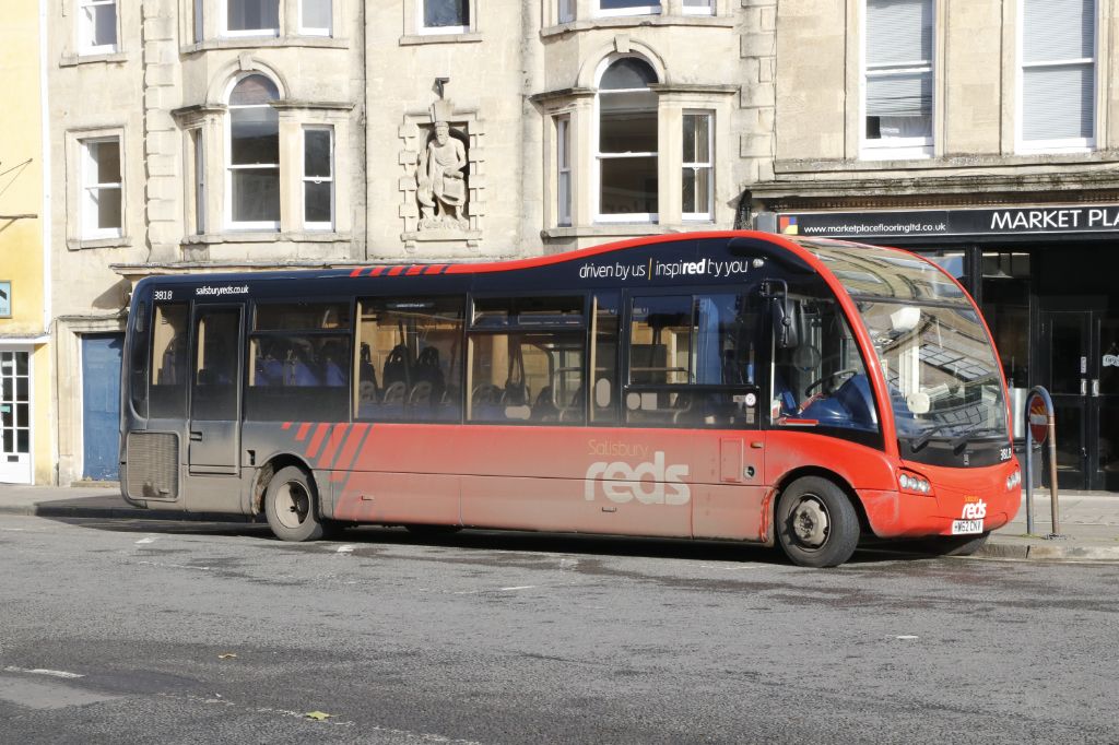 Go South Coast Salisbury Reds 2015 Optare Solo M900SL/Optare No.3825 (HF64BNV) seen in Blue Boar Row...