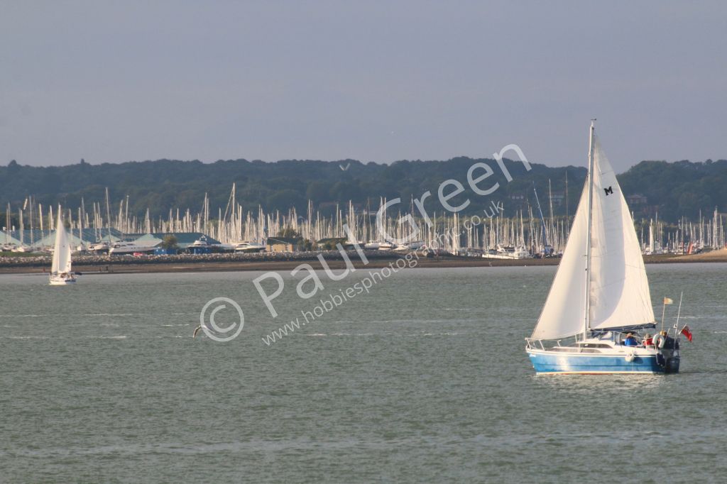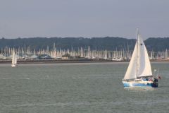 Fun in the Solent on 15th August 2015.The hundreds of masts moored in the Hamble River in the background.