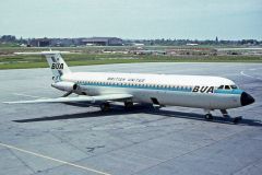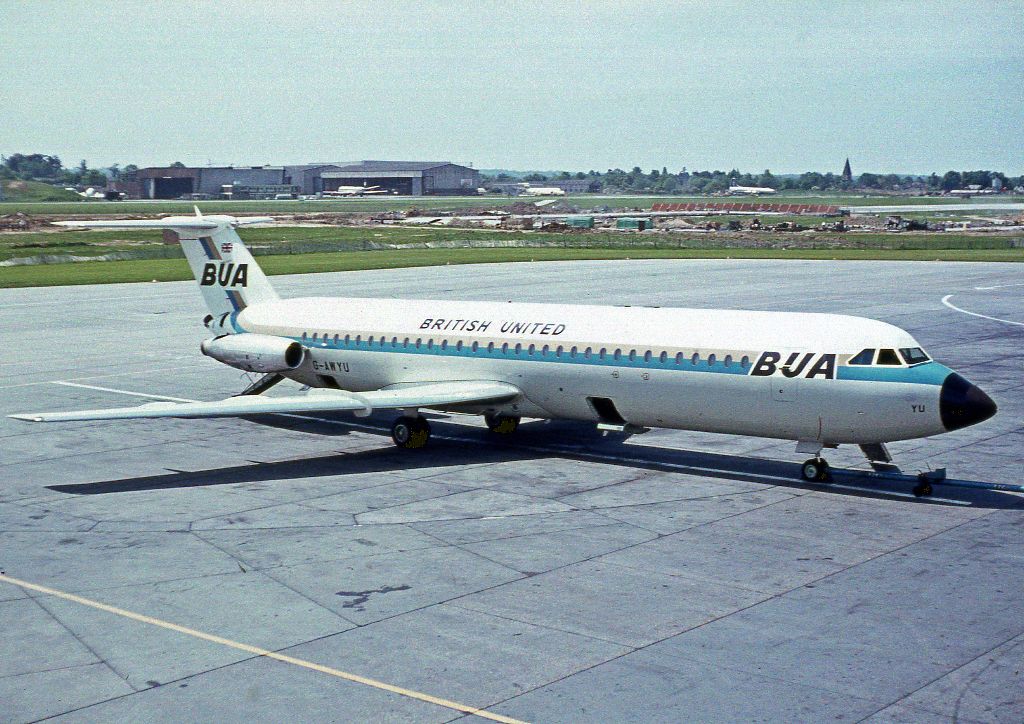 British United BAC 1-11-501AX G-AWYU seen at Gatwick Airport circa late 1969.British United Airway - 17.06.69, British Caledonian Airway - 00.10.70,British Airways - 14.04.88,EI-CIC Ryanair - 10.06.93,British Airways - 17.03.94 ,9Q-CKI Express City - 00.11.94,Zaire Express - 00.12.95,Zaire Airlines - 00.01.97,Hewa Bora Airlines - 21.05.97 Scrapped