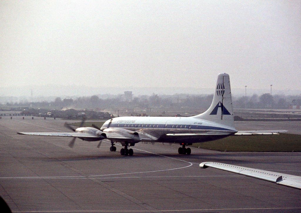 African International Bristol Britannia 314 5Y-ANS.This aircraft was delivered to Canadian Pacific Airlines as CF-CZX in 1958.It became Caledonian Airways G-ATMA in 1965 and joined African Safari Airlines in 1971 as 5Y-ANS and then reverted to G-ATMA with International Aviation Services (IAS) in 1972 and was subsequently scrapped.