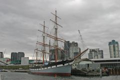 The Tall Ship Polly Woodside at berth in Melbourne.Polly Woodside was built at the north shipbuilding yard of Workman, Clark and Co, Queen's Island, Belfast during 1885, for William J. Woodside and Co. She was launched on 7 November 1885; the christening performed by the owner's wife, Mrs Marian ("Polly") Woodside, after whom the ship was named.[1] Polly Woodside operated as a cargo vessel carrying coal, nitrate, and wheat between British ports and the ports of South America, such as Montevideo, Valparaiso and Buenos Aires.\After several owners she ended her career as a coal hulkin Melbourne in 1946.An estimated 60,000 hours of painstaking voluntary labour saw the ship refurbished close to its original state.In 1978 she was opened under her original name to the public, and is now permanently moored at the old Duke and Orr's Dry Dock on the Yarra River near Melbourne.