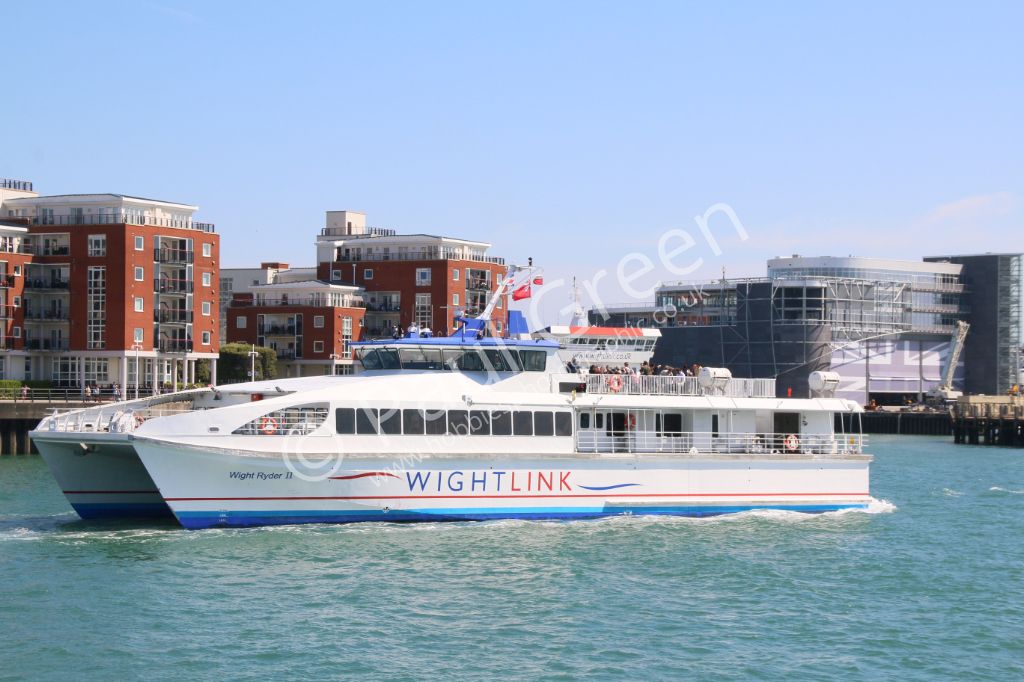 Wightlinks Wight Rider II leaving Portsmouth Harbour for Ryde, Isle of Wight on 8th August 2015.