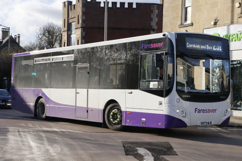 BV73MJJ seen leaving Chippenham Bus Station on December 22nd 2023 working a 231 service to Bath.