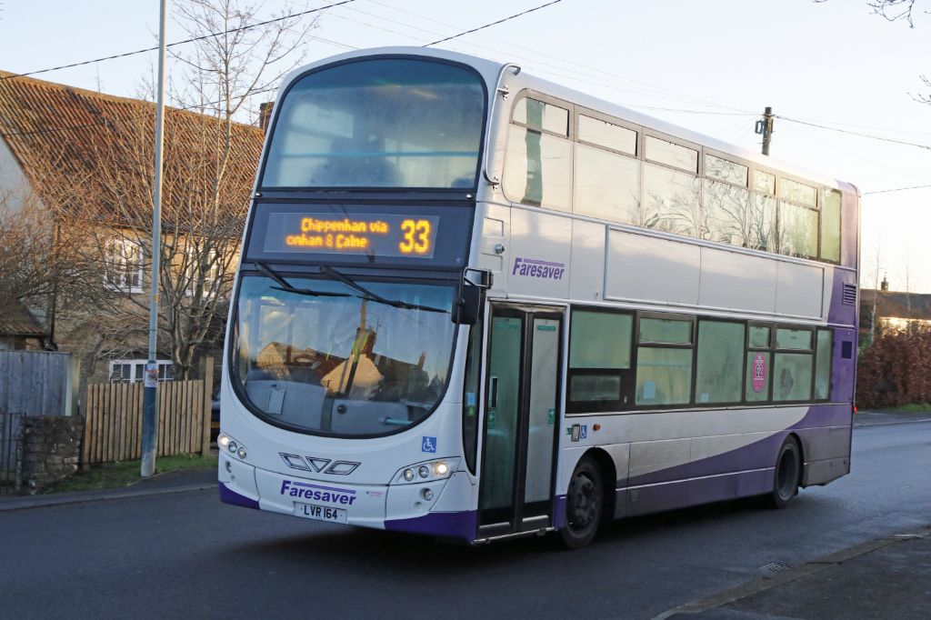 LVR164 seen in London Road, Chippenham on 10th January 2024 working the 07:55 33 service from Devizes