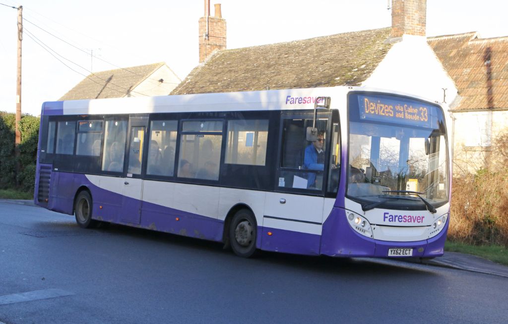 YX62ECT seen in London Road, Chippenham on 10th January 2024 working a 33 service to Devizes.
