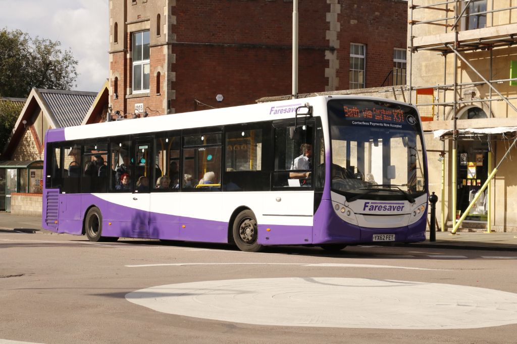 YX62FET seen in Central Chippenham working a service X31 to Bath on 7th October 2022.