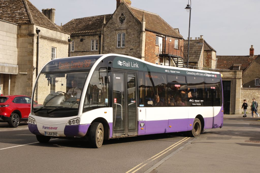 YJ66AOT leaving Chippenham Bus Station on 7th October 2023 working a 44K service to Kington St. Mich...