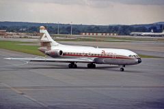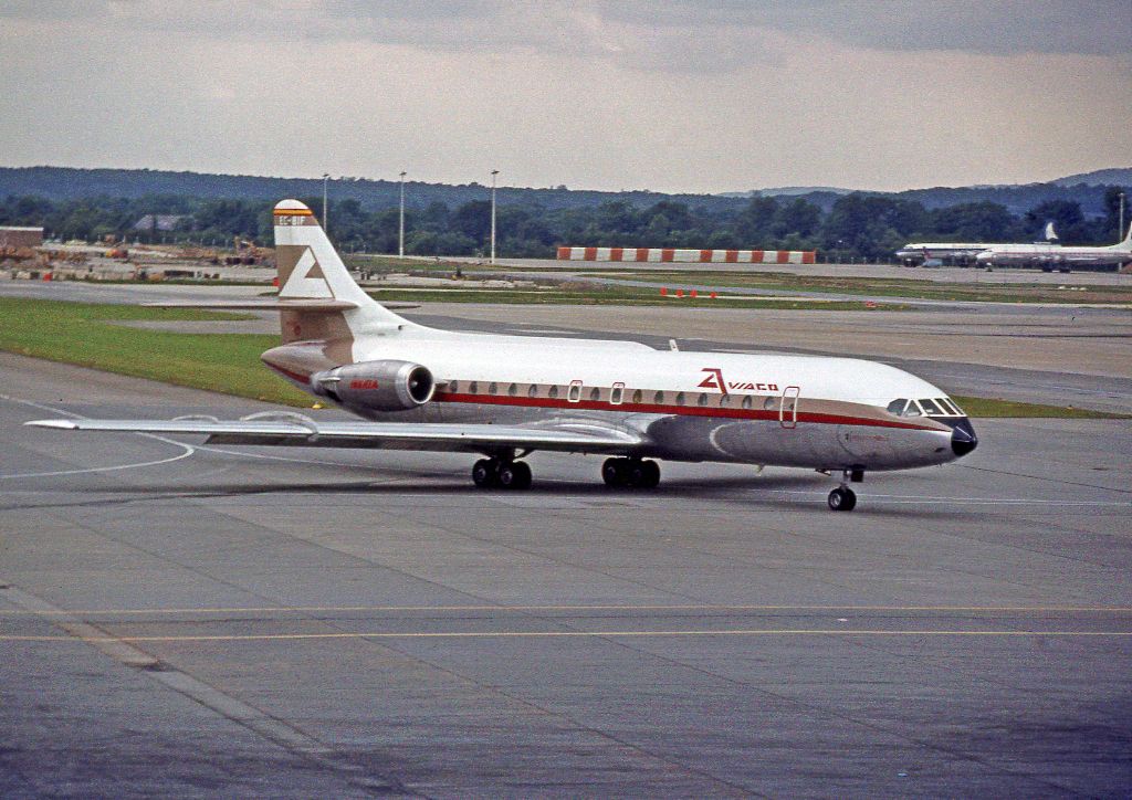 Aviaco Sud Aviation SE-210 Caravelle 10R EC-BIF.This aircraft was delivered to Iberia in 1967 and went to Aviaco in 1972. It went to Aero Lloyd in 1980 as D-ABAK,to Aerosucre Columbia in 1991 as HK-3676X and to Aerogolfo Columbia as HK-3869X.It is preserved by the Mexican Airforce as 10507.It is seen on an unknown date at Gatwick Airport.